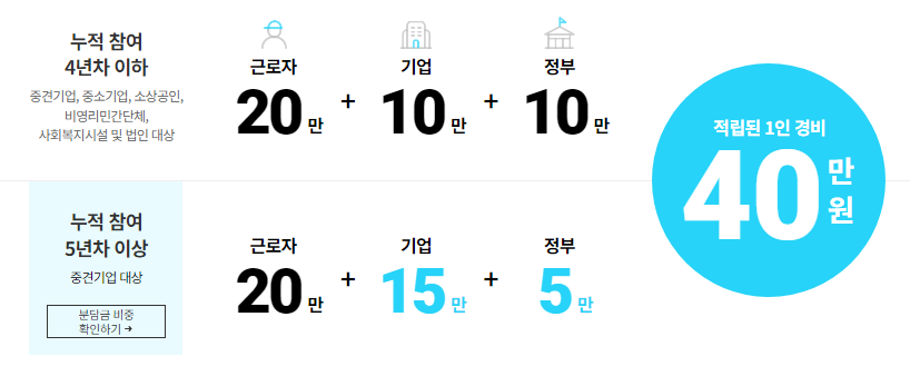 지원이 확정된 기업과 근로자가 분담금을 일괄 납부하게 되면 정부지원금이 추가로 적립됩니다.